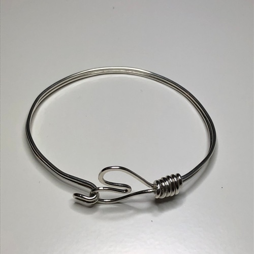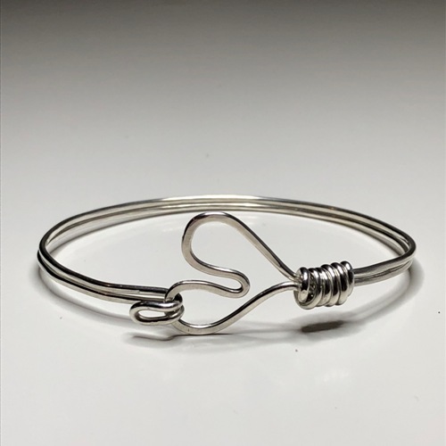 The Captured Heart bangle is handcrafted with a hammered effect design, made in Sterling Silver. The heart forms part of the clasp. A lovely simple design that looks delicate on the wrist.