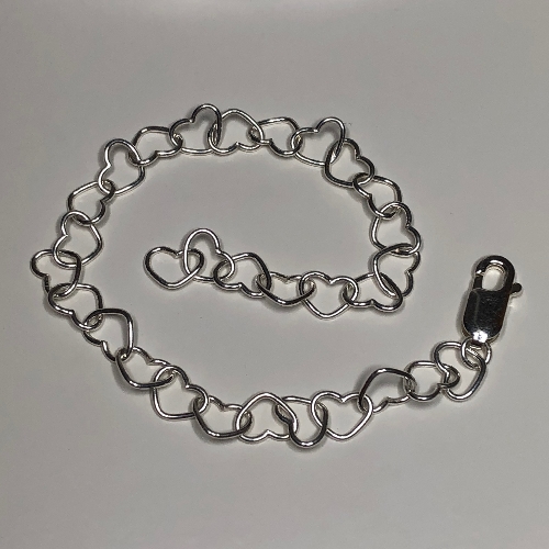 Sterling Silver Big Hearts link bracelet, the links diameter are approx 5x6mm and fastens with a lobster clasp.