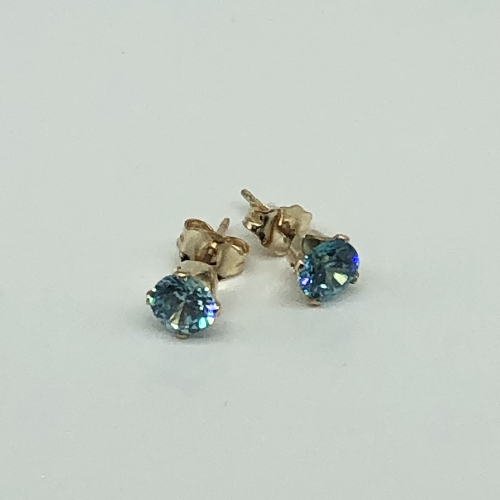 These handmade beautiful 14ct rolled Gold buttercup stud earrings are 5mm with scrolls and are set with 5mm exquisite sparkling cubic zirconia stones in light Blue