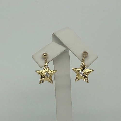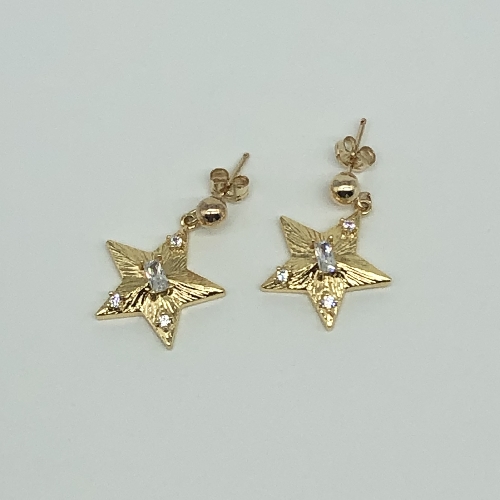 Handmade 14ct rolled gold 4mm bead stud earrings, with a 17mm cubic zirconia star pendant attatched to each stud.