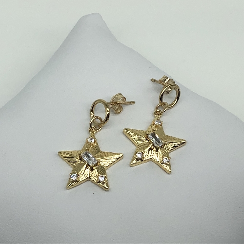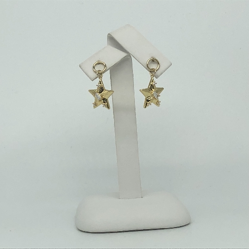 Handmade 14ct rolled gold 7mm 'circle of life' stud earrings and scrolls, with a 17mm cubic zirconia star pendant attatched to each stud.