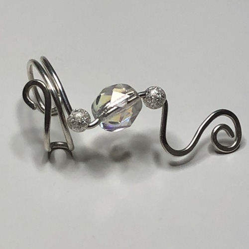 An exclusive and unique handcrafted Sterling Silver cuff earring (left ear) with 2 Sterling Silver frosted sparkle beads and a Swarovski crystal bead.