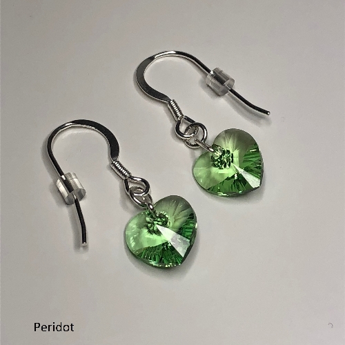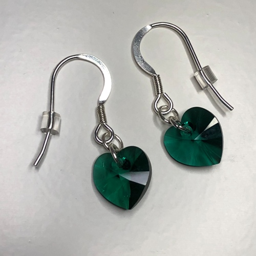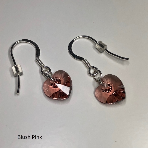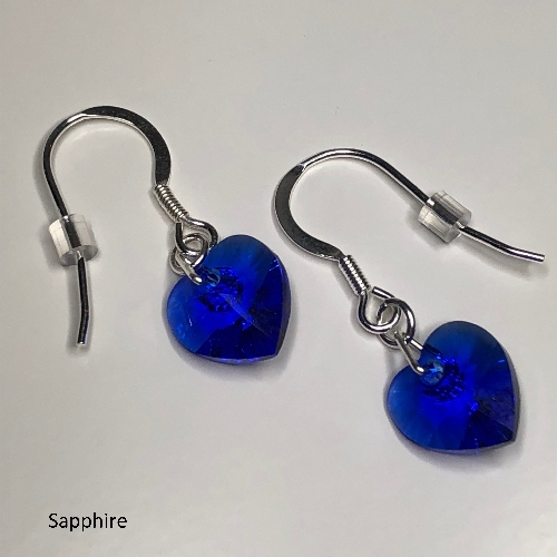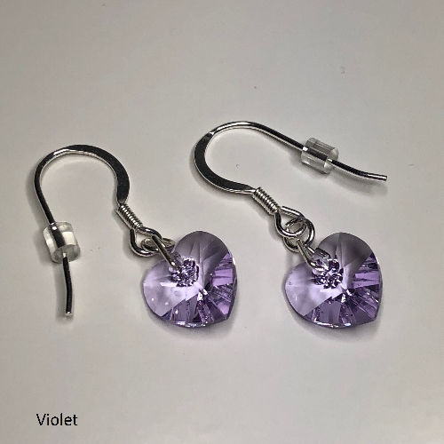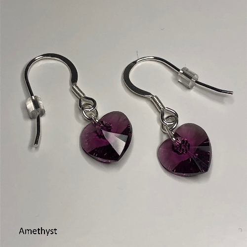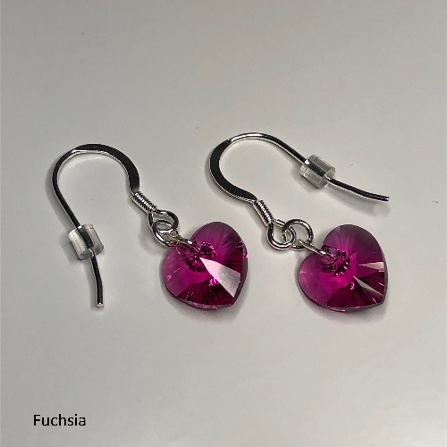 Handmade Sterling Silver hook wire earrings with Swarovski Crystal hearts (10mm), supplied with rubber stoppers.