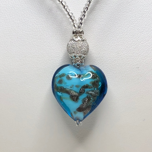 Murano Heart & Sterling Silver Necklace - Aquamarine