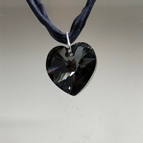 Hand dyed 100% Silk double cord necklace in dark Navy with a Swarovski Crystal heart pendant. Sterling Silver ends and bolt ring clasp.