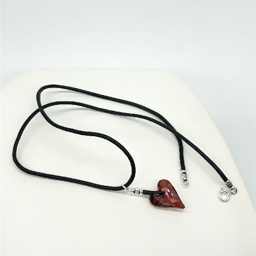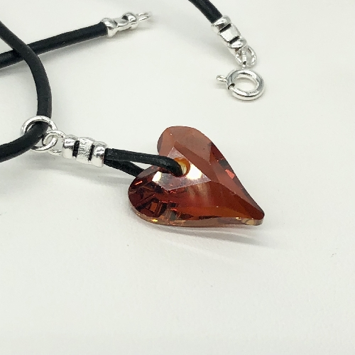 This gorgeous Swarovski Wild Heart pendant, in Red Magma, has a Leather & Sterling Silver bail and is hung on a 2mm thick Greek Leather cord with Sterling Silver trimmings and a bolt ring clasp.